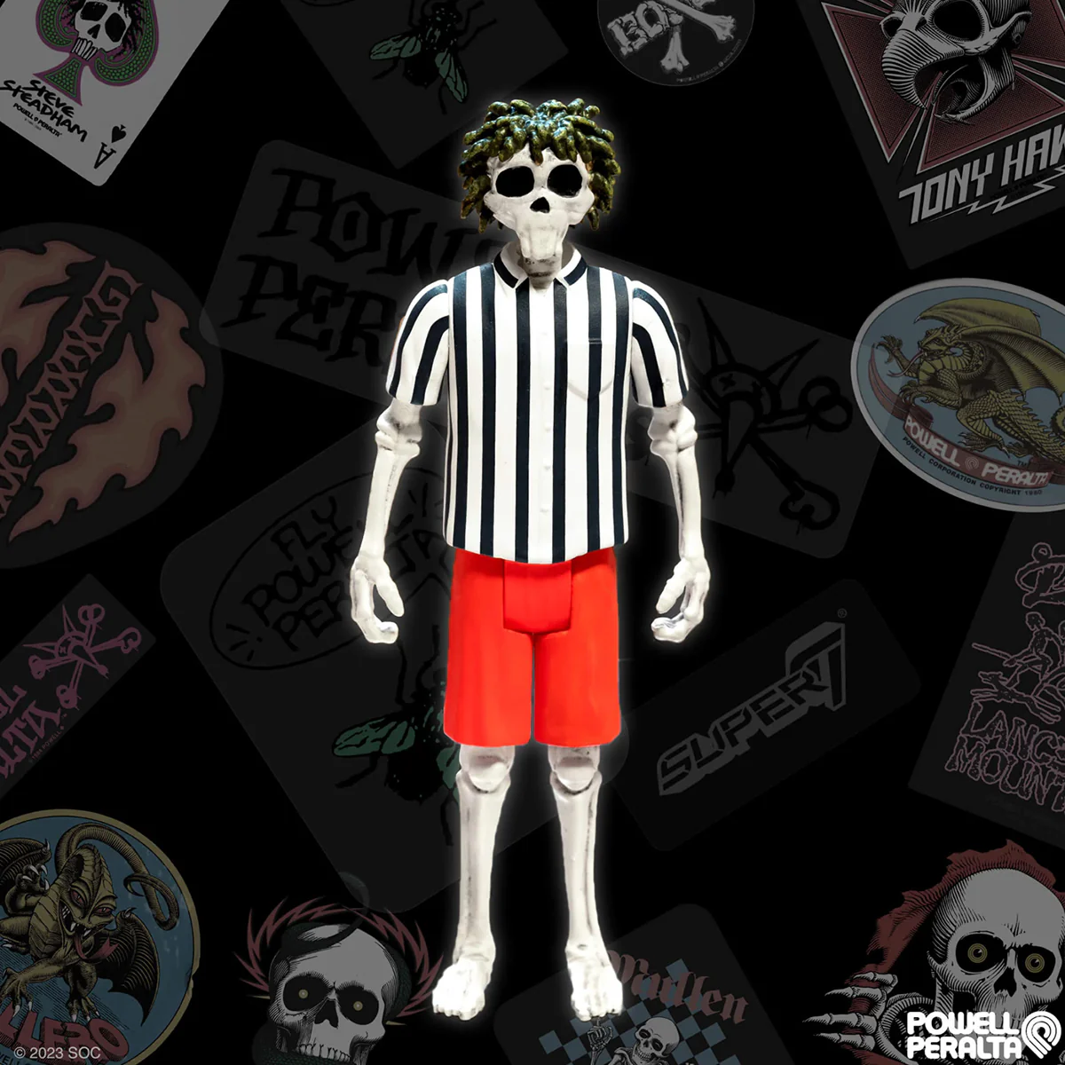 Strong, fast, and stylish, Steve Steadham turned heads with skills and tricks that got him noticed everywhere he went! This 3.75” articulated Powell-Peralta ReAction Figure of Steve Steadham features unique skull and hair detail taken from his deck artwork. The Bones Brigade helped define the golden era of skateboarding and any classic skateboarding collection would be incomplete without the Powell-Peralta ReAction Figure of Steve Steadham.